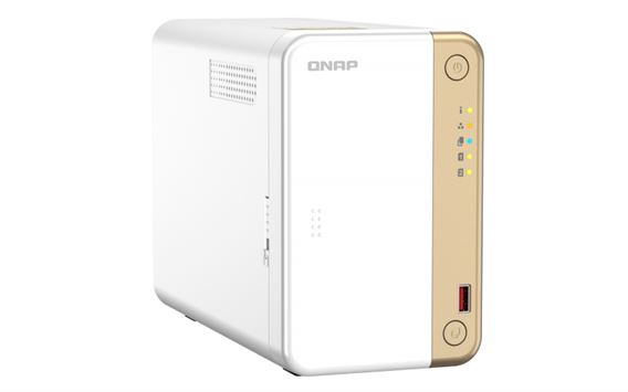 QNAP TS-262. Tipos de unidade de armazenamento suportados: HDD & SSD, Interfaces de armazenamento suportadas: Serial ATA III, Tamanhos de armazenamento de drives compatíveis: 2.5,3.5". Família de processador: Intel Celeron, Fabricante do processador: Intel, Modelo de processador: N4505. Capacidade da memória incorporada: 4 GB, Memória RAM máxima suportada: 4 GB, Tamanho da memória flash: 4000 MB. Taxa de transferência de dados Ethernet LAN: 10,100,1000,2500 Mbit/s, Protocolos de rede suportados: IPv4, IPv6. Tipo de chassis: Tower, Tipo de refrigeração: Ativo, Cor do produto: Dourado, Branco