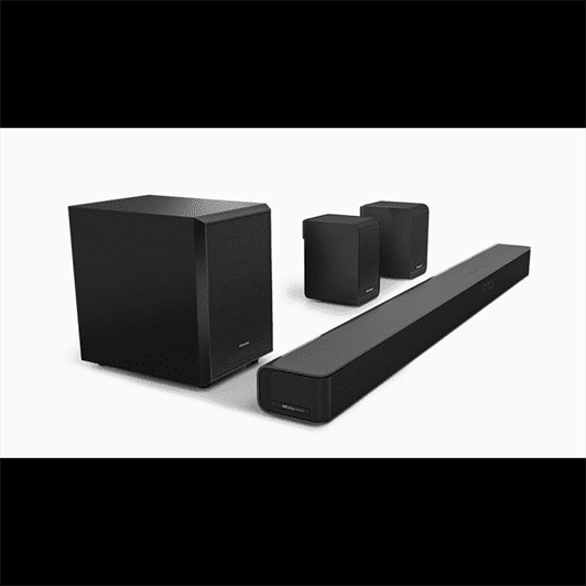 Hisense AX5100G. Canais de saída de áudio: 5.1 canais, Modos de equalizador: Baixo, Filme, Música. Potência RMS da soundbar: 340 W. Tipo de subwoofer: Subwoofer ativo, Conectividade do subwoofer: Sem fios, Subwoofer energia RMS: 60 W. Cor do produto: Preto, Compressão de áudio: ALAC, FLAC, MP3, MP4, WAV, WMA, Controlo do volume: Botões. Tecnologia de conetividade: Com fios e sem fios