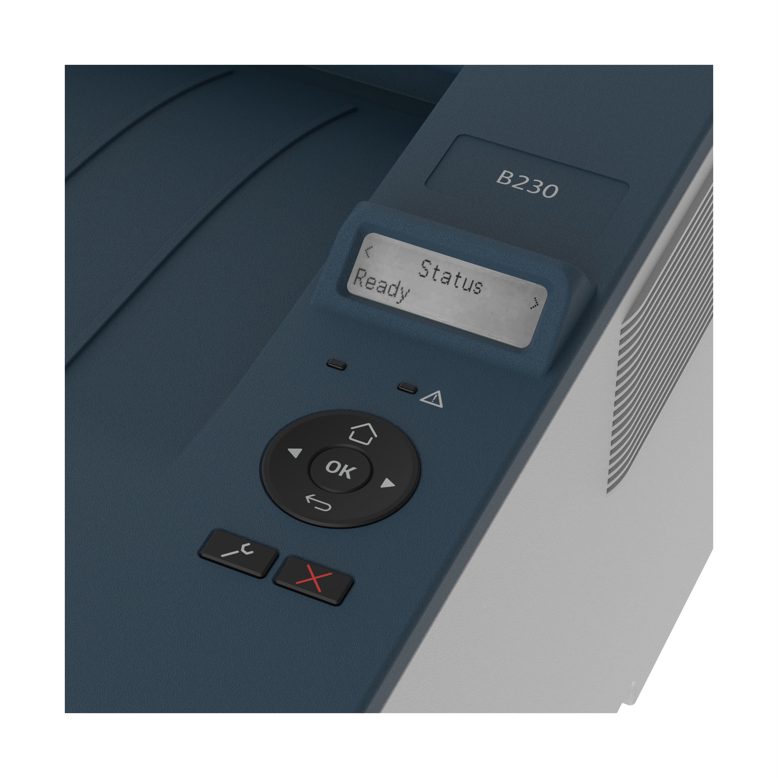 XEROX Laser Mono B230V/DNI. Tecnologia de impressão: Laser. Número de tinteiros: 1, Ciclo de funcionamento máximo: 30000 páginas por mês. Resolução Máxima: 600 x 600 DPI. Dimensão máxima de papel ISO A-series: A4. Velocidade de impressão (preto, qualidade normal, A4/US Letter): 34 ppm, Impressão Duplex. Wi-Fi. Cor do produto: Azul, Branco